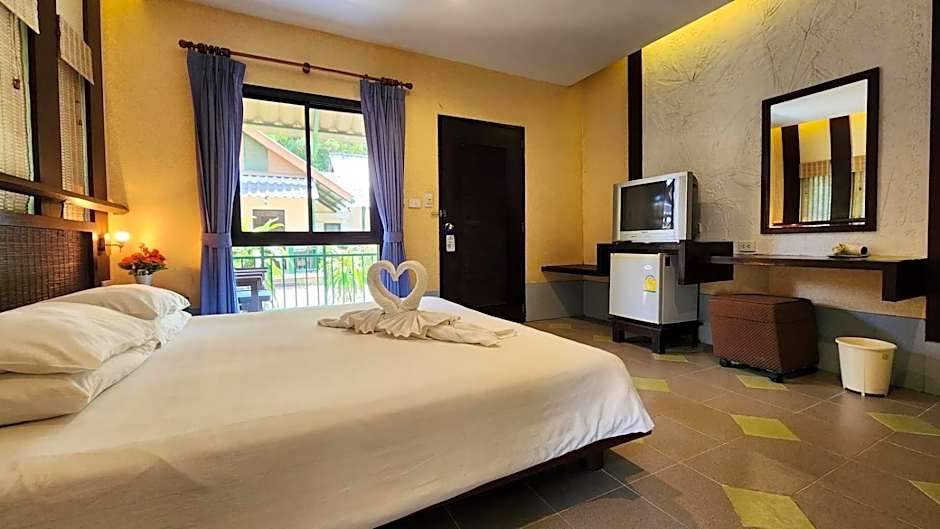 This bungalow has air conditioning, mini-bar and patio.